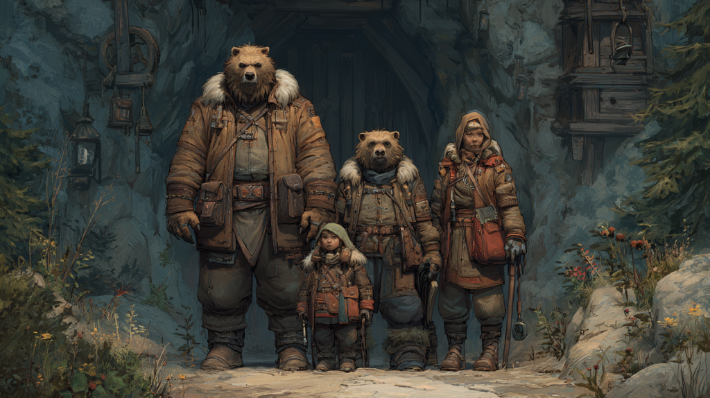 Massicci e possenti, con arti vigorosi e un portamento imponente, gli uomini orso sono creature lente all’ira ma temibili quando provocate. Tendono a vivere isolati o in piccoli clan montani e forestali, dove ricoprono il ruolo di guardiani della natura o di saggi. La loro cultura è improntata alla resistenza, alla riflessione e al rispetto dei cicli naturali. Sono noti per la loro calma e perseveranza, ma anche per la forza bruta che li rende avversari letali in battaglia.